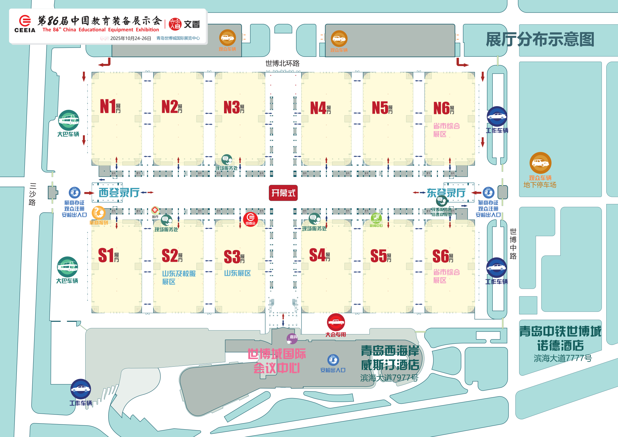 2.现场报名。10月24日—25日(9:00-16:00),26日(9:00-11:30)在青岛世博城国际展览中心东登录厅或西登录厅入口处,扫描现场二维码并关注“教育装备网”微信公众号,点击右下角“报名入口”完成观众线上报名以获取进场报名二维码,凭报名二维码可进场观展。